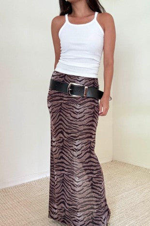Tiger Printed Mesh Low Waist Maxi Skirt